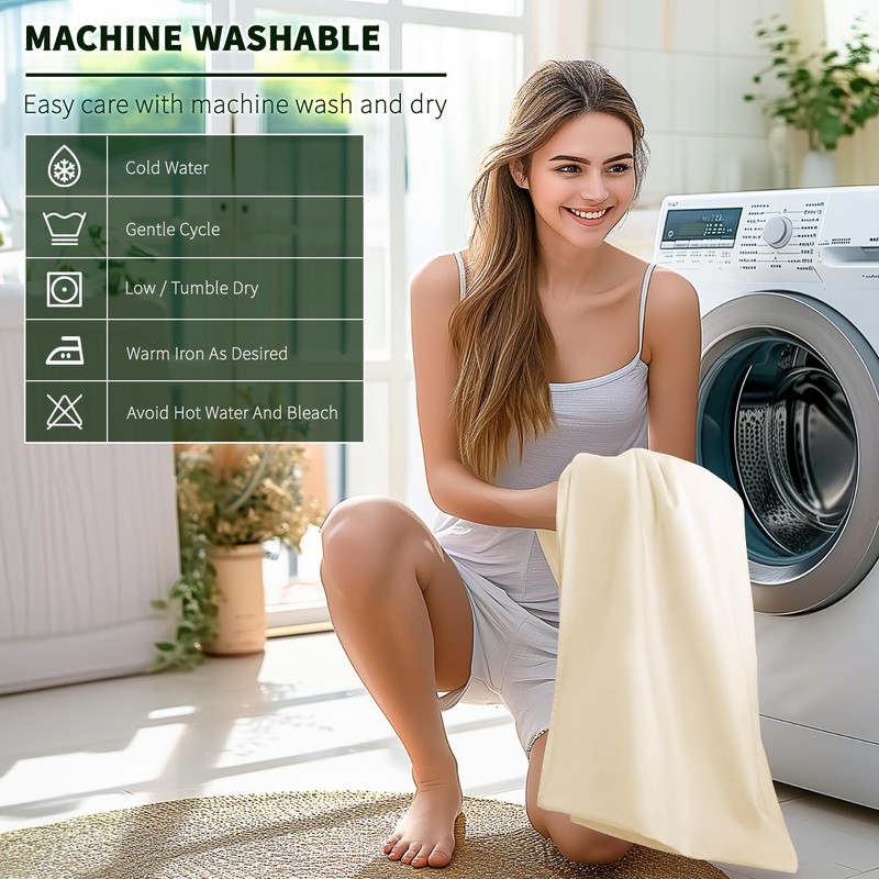 • EASY TO CARE: Bid adieu to the worry of loose fibers with our extra long staple cotton bedding. Each sheet is expertly woven to ensure no pilling and long-lasting strength. For these machine washable sheets, laundry care is very simple. To avoid shrinkage and prevent wrinkles, we recommend machine washing the sheets at room temperature, tumble dry them on low, and folding them immediately after. You will find that these sheets are still as soft and skin friendly as new