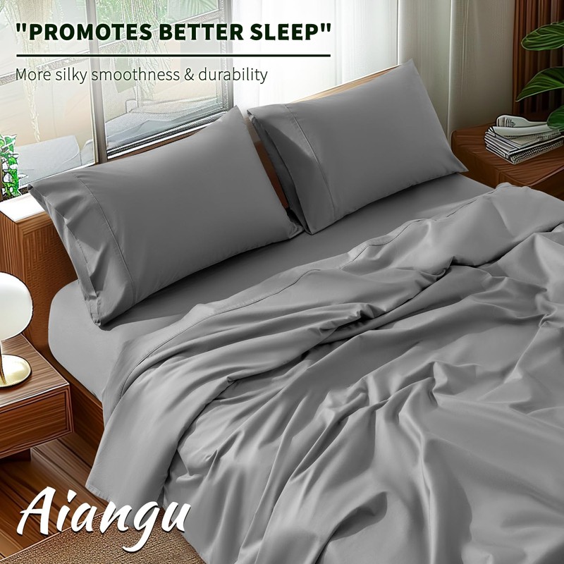 AiAngu Bed Sheet Set 100% Cotton 1000 Thread Count Sateen Weave Deep Pocket Wrinkle Resistant(King,Grey-21)