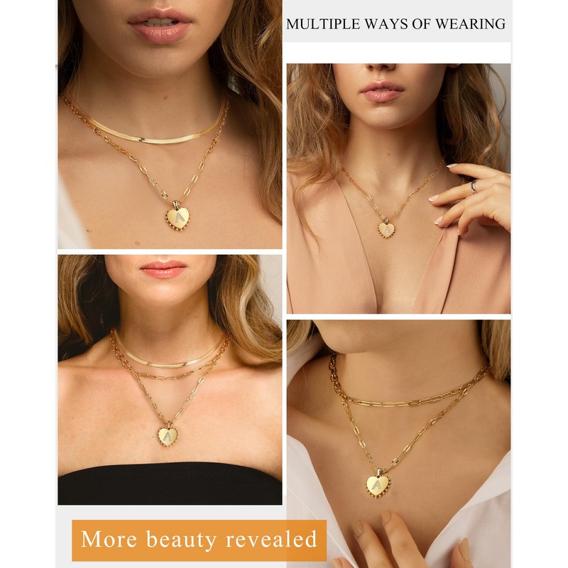 - Women's Gold Plated Multi-Layered Initial Necklace - 18K Gold Plated Delicate Multi-Layered Paper Clip Chain Necklace, Simple Adjustable Initial Pendant Necklace, Multi-Layered Gold Chain Necklace, Women's Jewelry Gift Gold Plated Cubic Zirconia Heart Pendant Necklace, Delicate Paper Clip Chain, Best Birthday Gift for Women
