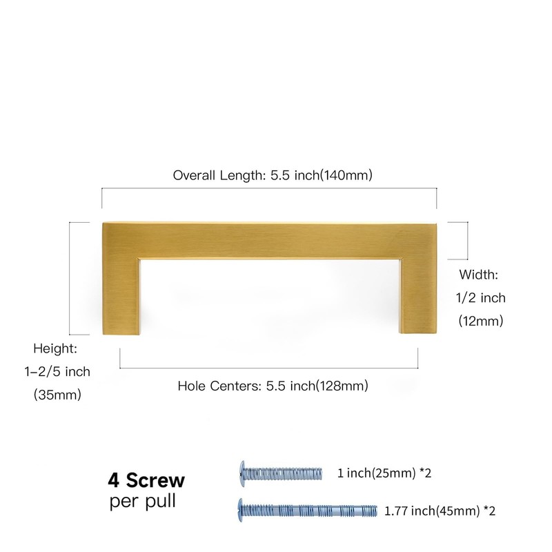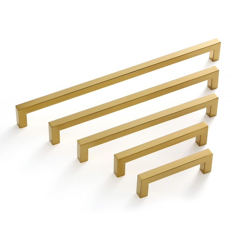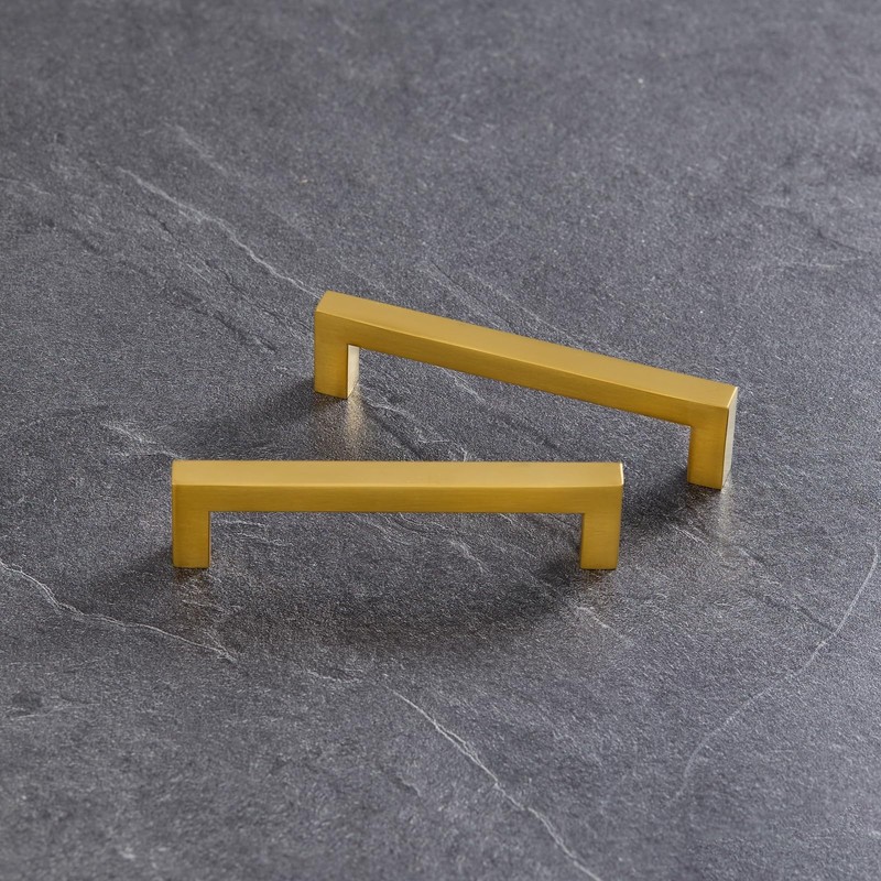Aibeli Cabinet Handles 10 Pack Brushed Brass Drawer Pulls 5 inch Square Cupboard Handles Door Handles Stainless Steel Kitchen Pulls for Cabinets Golden Hardware