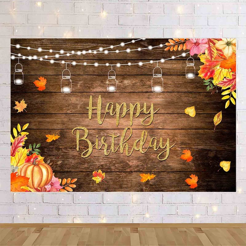 AIBIIN 7x5ft Fall Birthday Backdrop Autumn Thanksgiving Harvest Maple Wooden Rustic Photography Background Happy Birthday Party Decoration for Girls Baby Shower Banner Supplies Photo Booth Prop