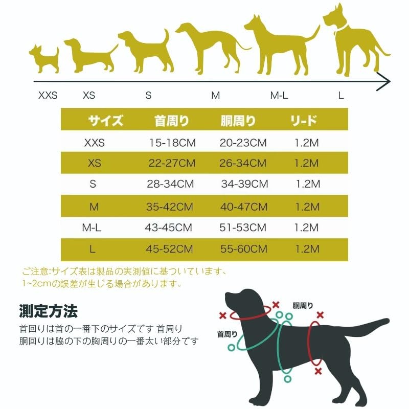 • 【サイズ】ご購入前に愛犬の実際に首囲と胴囲サイズを測り、適切なサイズのハーネスをお選びください。