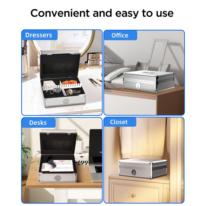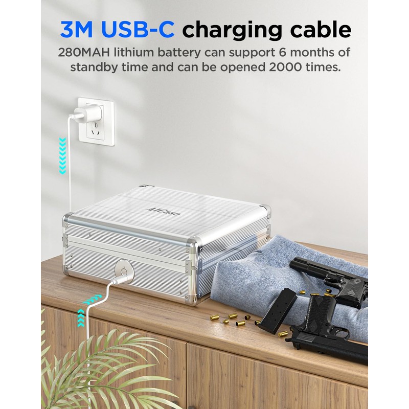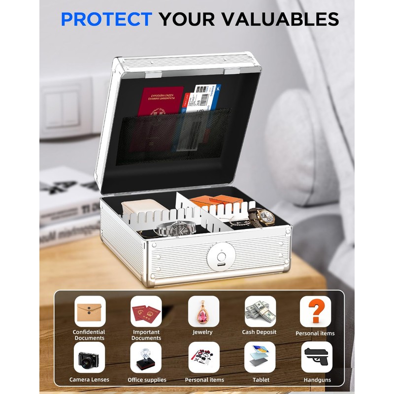 AICase Biometric Fingerprint Storage Box, Portable Cash Jewelry Security Case Lock Box Safe,Combination Lock for Car, Home,Office Travel_01