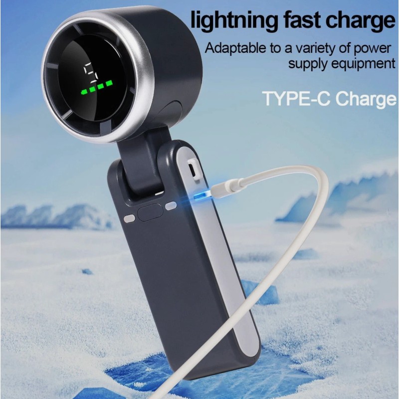 AICase NEW Mini Desk Neck Handheld Turbo Fan 5 speed Rechargeable Cooling Fan USB-C