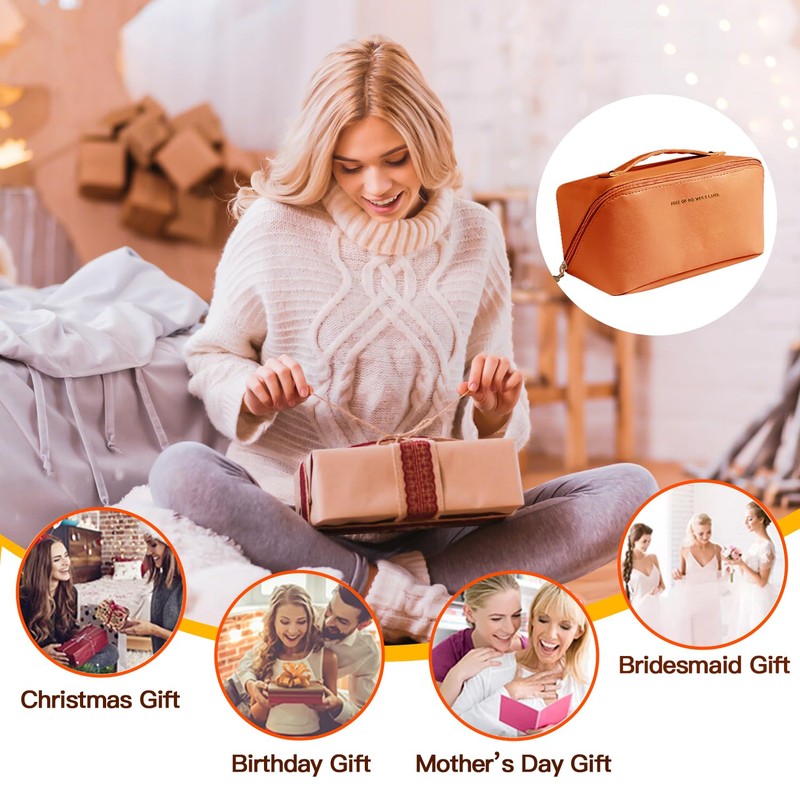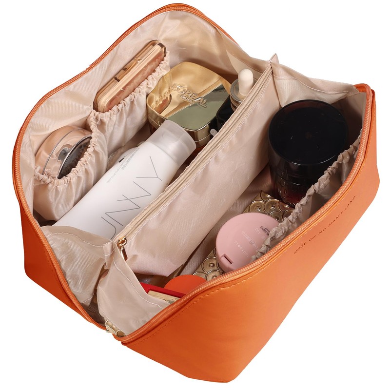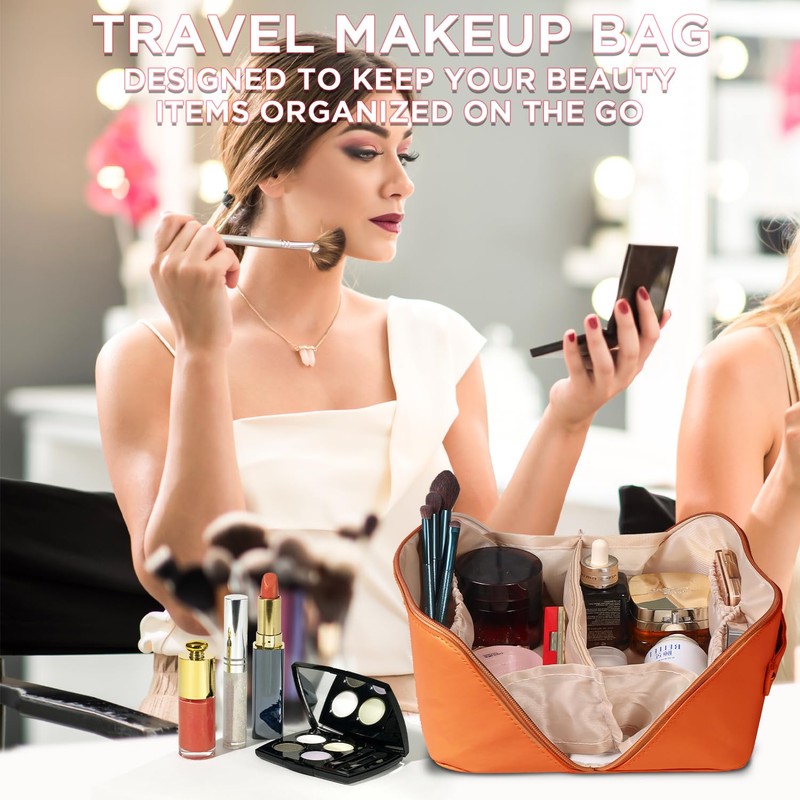 - Easier access design: the flat make-up bag that moves as fast as you! It opens flat so you can see all your make-up at the same time - and then quickly closes when you are ready. The comfortable, comfortable handle is comfortable to carry.
