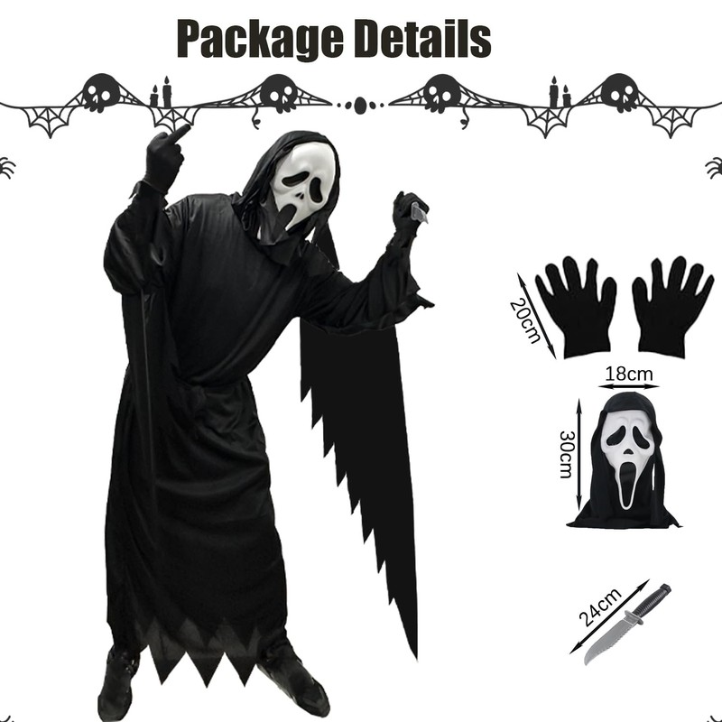 - Halloween scream costume: really restores the image of the film and creates a mysterious and dark atmosphere suitable for various horror parties, Halloween and masquerade scenes. It is also a surprising Halloween gift for family, children and friends.