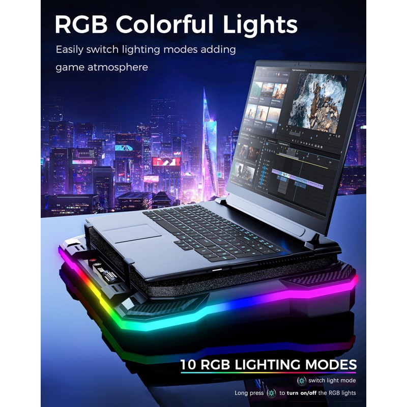 - [Dynamic RGB Lighting] With 10 adjustable modes with a memory function to recall your last setting, or turn it off completely, the laptop fan cooling pad allows you to set a gamer atmosphere when gaming with your team