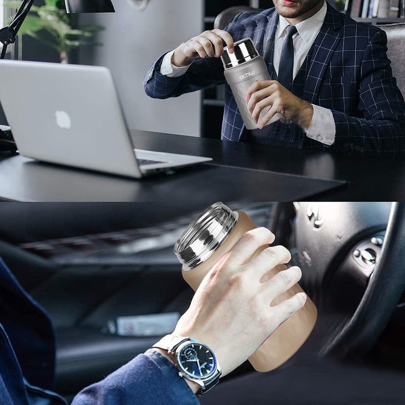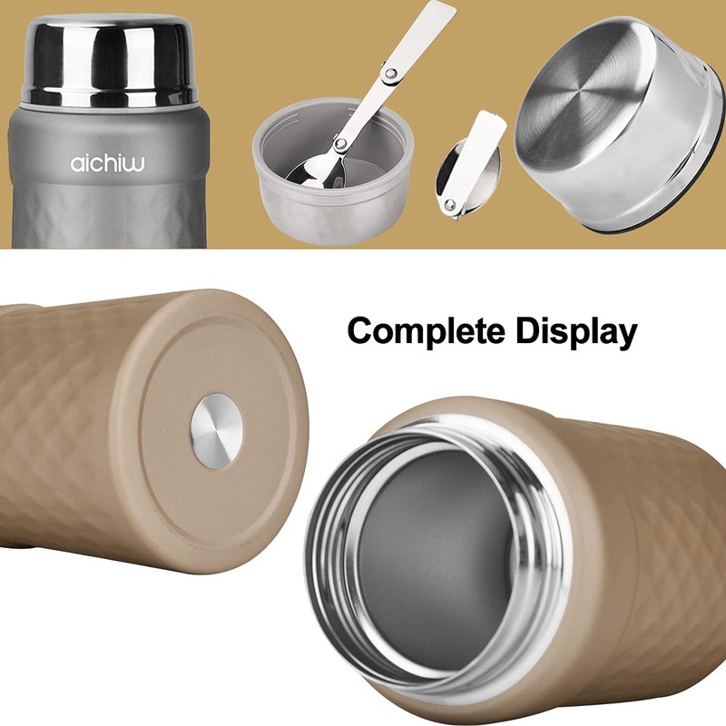aichiw Insulated Food Jar Containers for Lunch School Soup Vacuum Leakproof Stainless Steel Lunch Bento Box with Foldable Spoon for Travel Camping (600ml Grey)