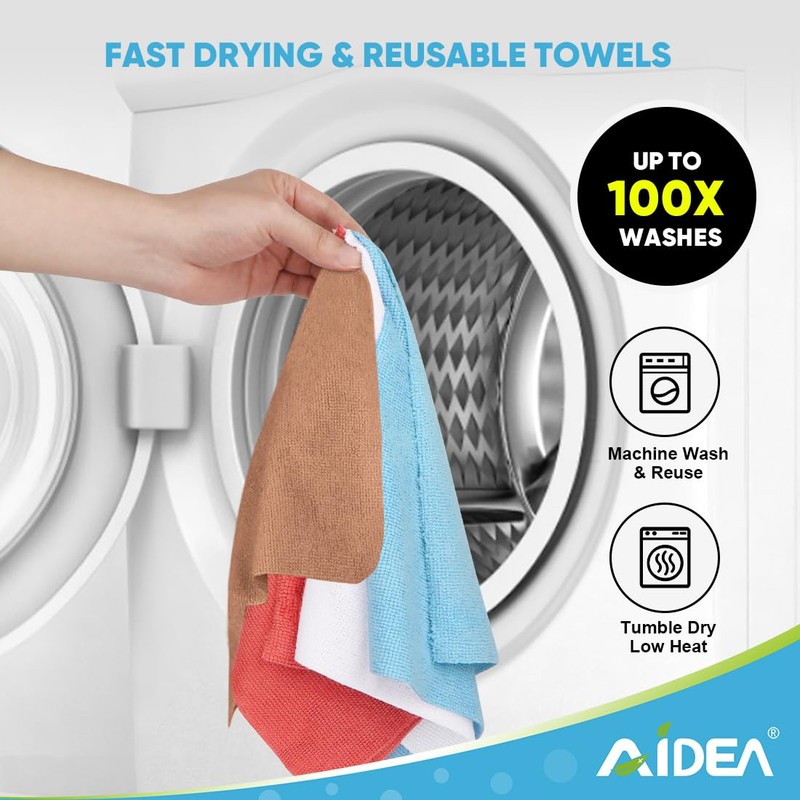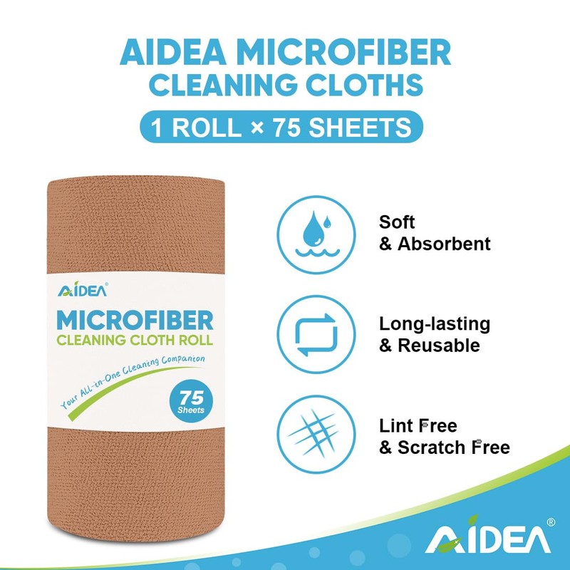 AIDEA Microfiber Cleaning Cloth Roll, 75PK, Reusable Paper Towels Tear Away Cloth, Microfiber Towels Washable Shop Rags, Lint Free Cleaning Rags for House, Kitchen, Window, 11.5"×11.5", Coffee