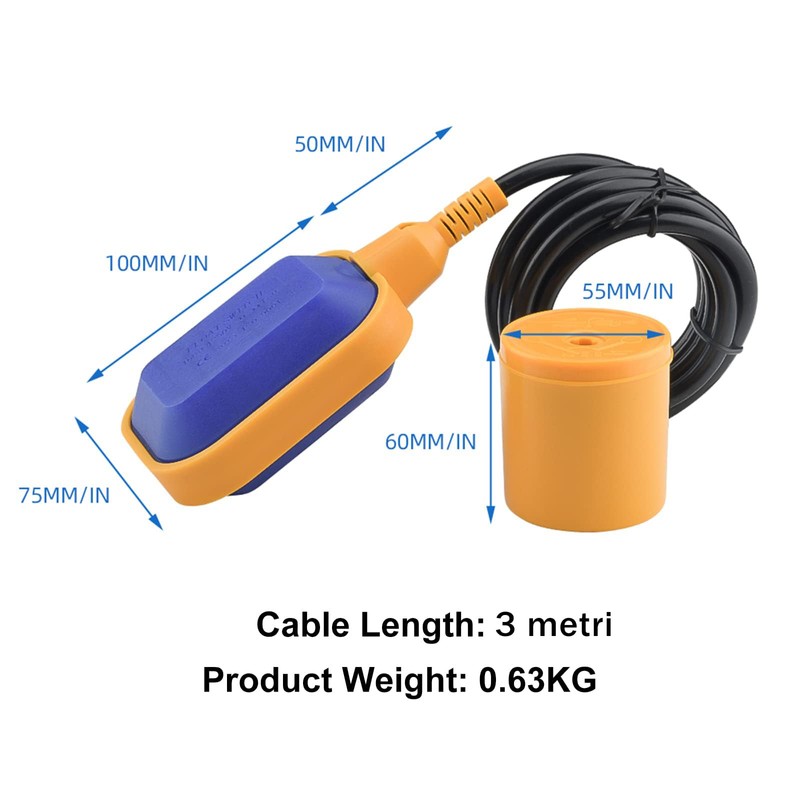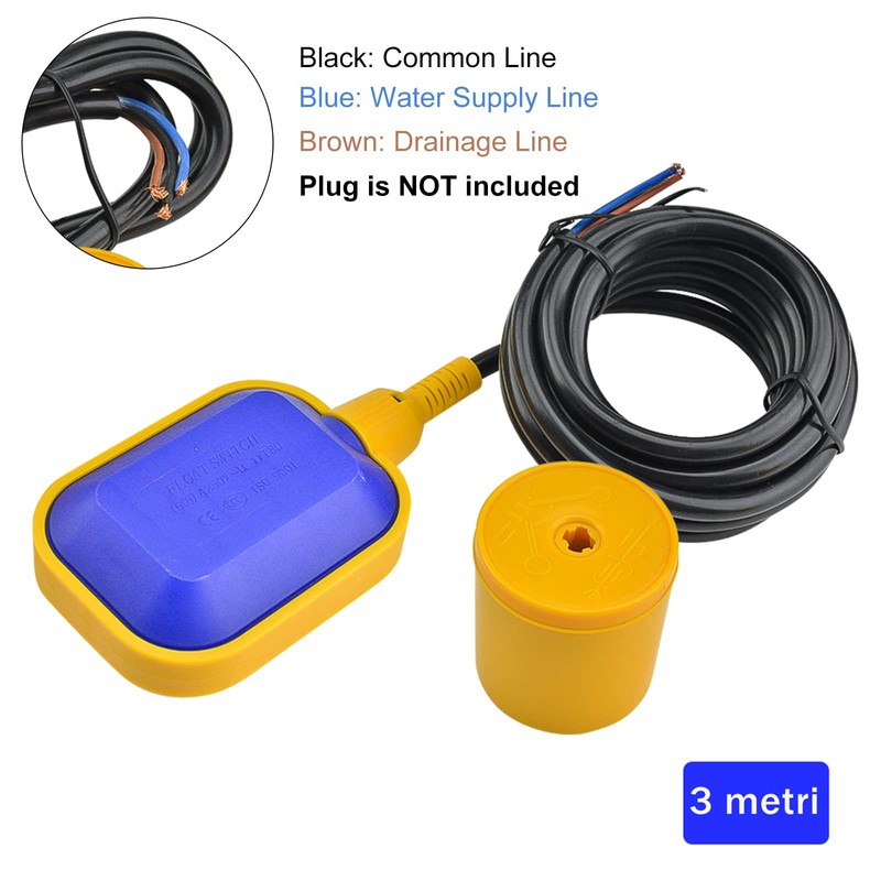 Aideepen 3 m Cable Water Level Regulator, Automatic Adjustment Switch, Rectangular Float Switch for Water Tower Tanks, Swimming Pools, Factory Pools AC 220V-380V