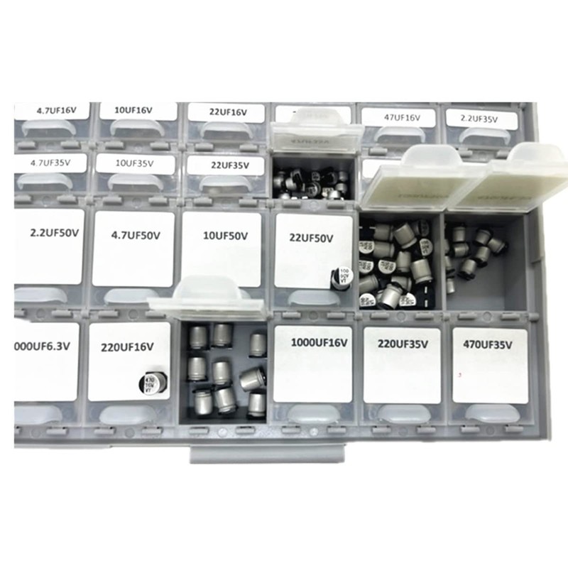 1. In this set, we offer 24 Values surface mount electrolytic capacitors include 6.3V 16V 35V 50V, range from 4.7uF to 1000uF total 410pcs filled in our popular BOX-ALL-48, with clearly labeled compartments with individual lids.