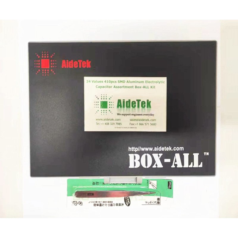 AideTek 24 Values 410pcs SMD Aluminum Electrolytic Capacitor Assortment Kit with BOXALL-48 Storage Box Range 4.7uF-1000uF 16V-50V