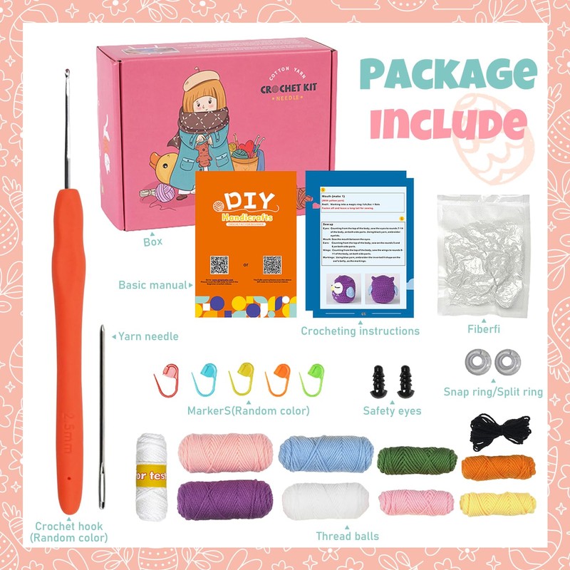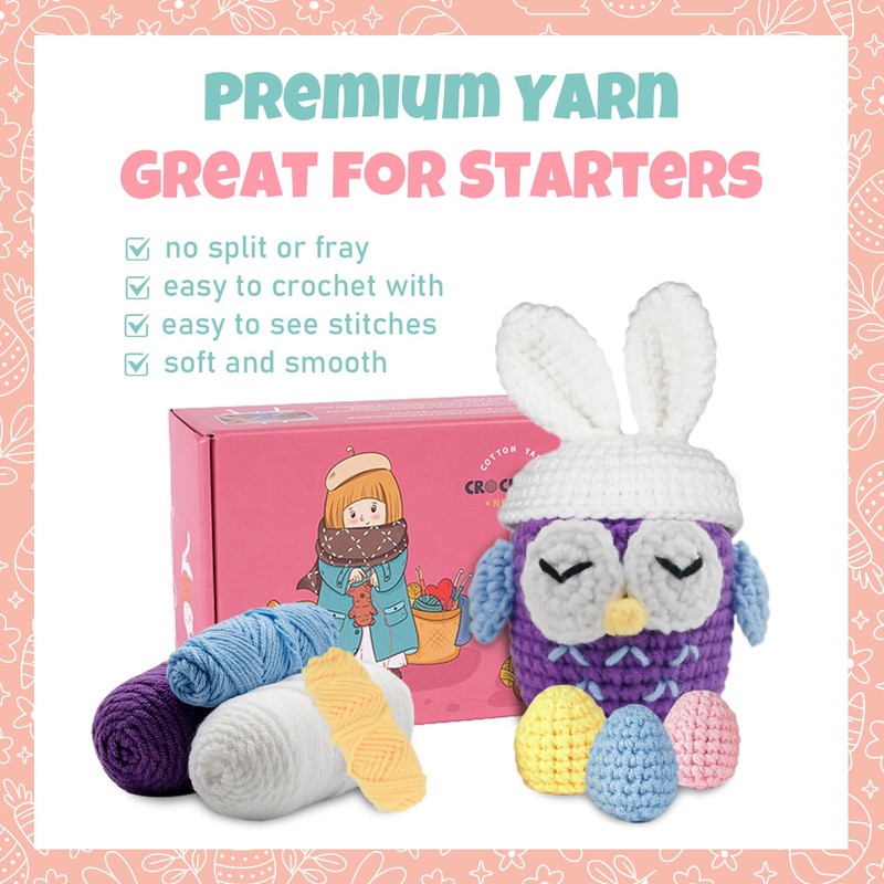 • 【Crochet Kit for Beginners】Beginner crochet kit for DIY materials pack includes everything you need, come with yarns, stuffing, crochet hook, big eye needle, stitch markers, instruction, booklet. Complete tools and materials to make the plant and Learn crochet skill. Unleashing your creativity and bring your imagination to life with this versatile crochet kits, perfect for creating Easter Bunny Egg, Easter decorations, and Easter decor.