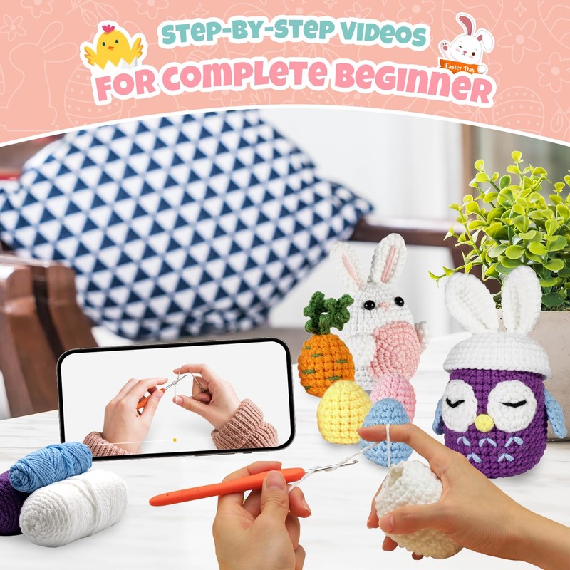 • 【Easy to Follow the Video Tutorials】Crochet kit for beginners adults and kids can follow video tutorials that make learning easy and convenient. These tutorials are beginner-friendly, suitable for adults and basic crochet instructions to help you understand the principles of crochet in more detail, especially when crafting Easter Bunny Egg, Easter decorations, and Easter decor.