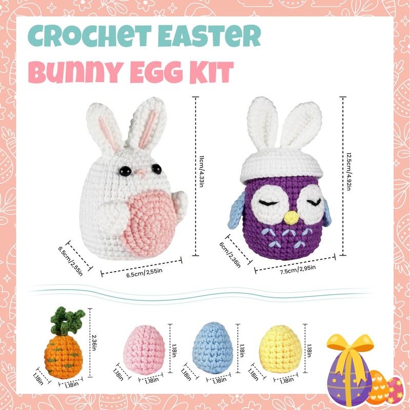 Complete beginner crochet materials pack includes everything you need, come with yarns, stuffing, easter decorations, crochet hook, big eye needle, stitch markers, instruction booklet. Complete tools and materials to make the Easter Bunny Egg and learn crochet skill. Unleashing your creativity and bring your imagination to life with this versatile easter decor crochet kits.