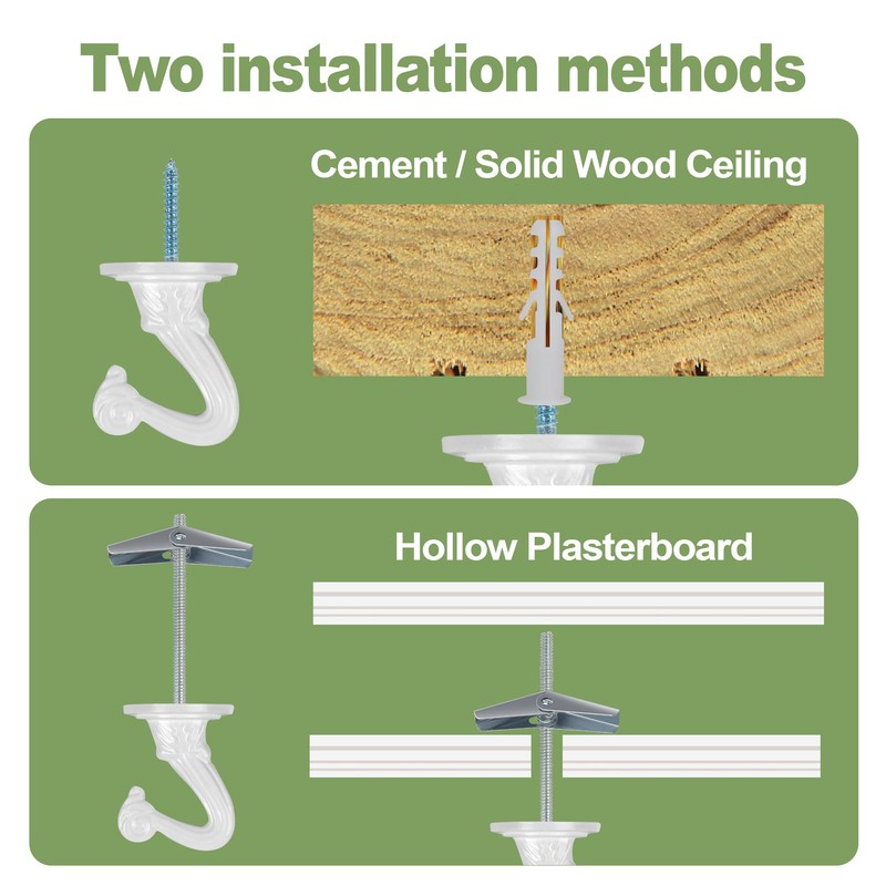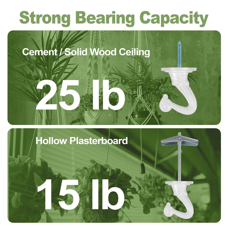- High Load Capacity: Each ceiling hook can hold up to 25 pounds (solid walls) or 15 pounds (plasterboard, hollow walls), ensuring the stability of your hanging items.
