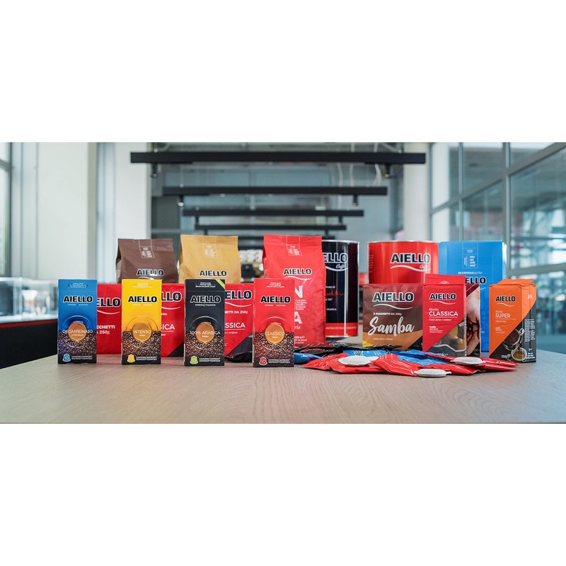 • AUTHENTIC ESPRESSO ITALIANO STYLE COFFEE: Roasted, blended and packed in Italy. Aiello’s roasting method allows for the full preservation of aroma. Each single coffee bean variety is roasted individually before blending. This assures superbness, balance and consistency in taste cup after cup.