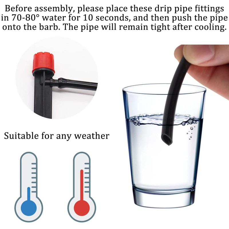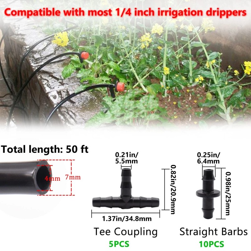 Wide Application: The 1/4 inch drip irrigation tubing is suitable for all standard 1/4 inch barb fittings, and can be installed in flower beds, gardens, ground cover plants or other landscape areas
