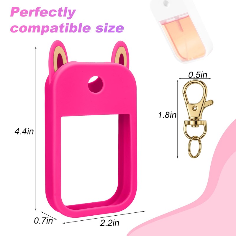 AIERSA Hand Sanitizer Spray Case Compatible with Touchland,Rabbit Ears Design Silicone Hand Sanitizer Case Holder with Keychain for Touch Land Mist Case 1FL. OZ (Hot Pink)
