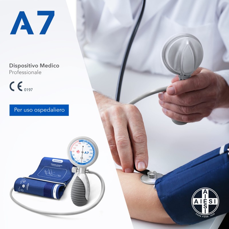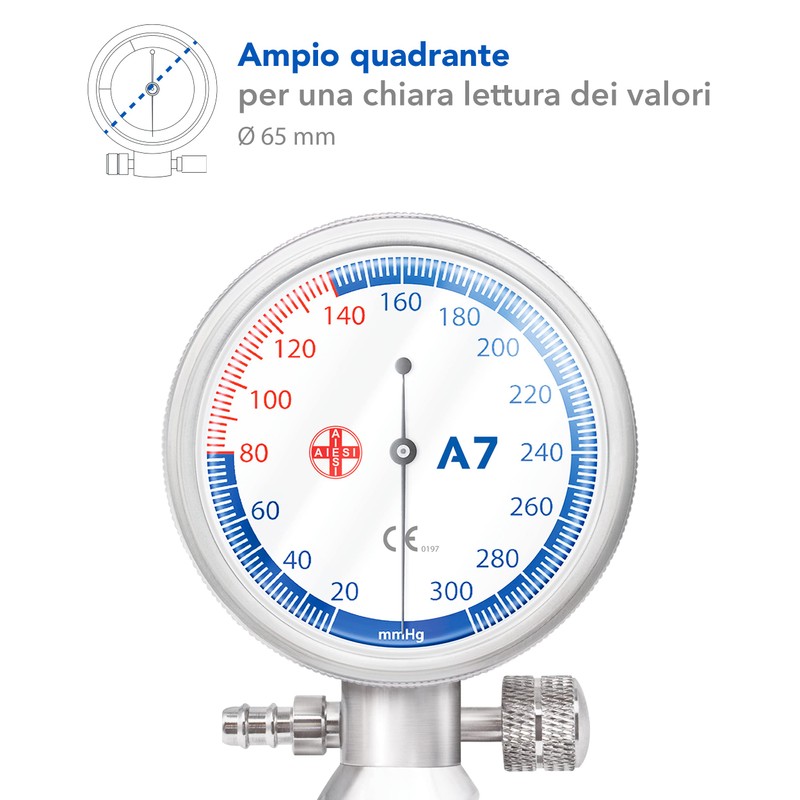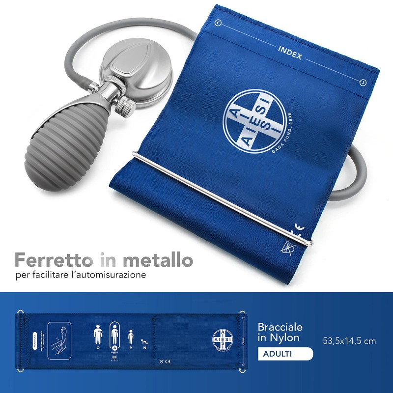 AIESI® Blutdruckmessgerät Manuelles Professionelles aneroid oberarm handheld modell für erwachsene ANEROID A7, Verstellbarer Griff, 24 monate garantie