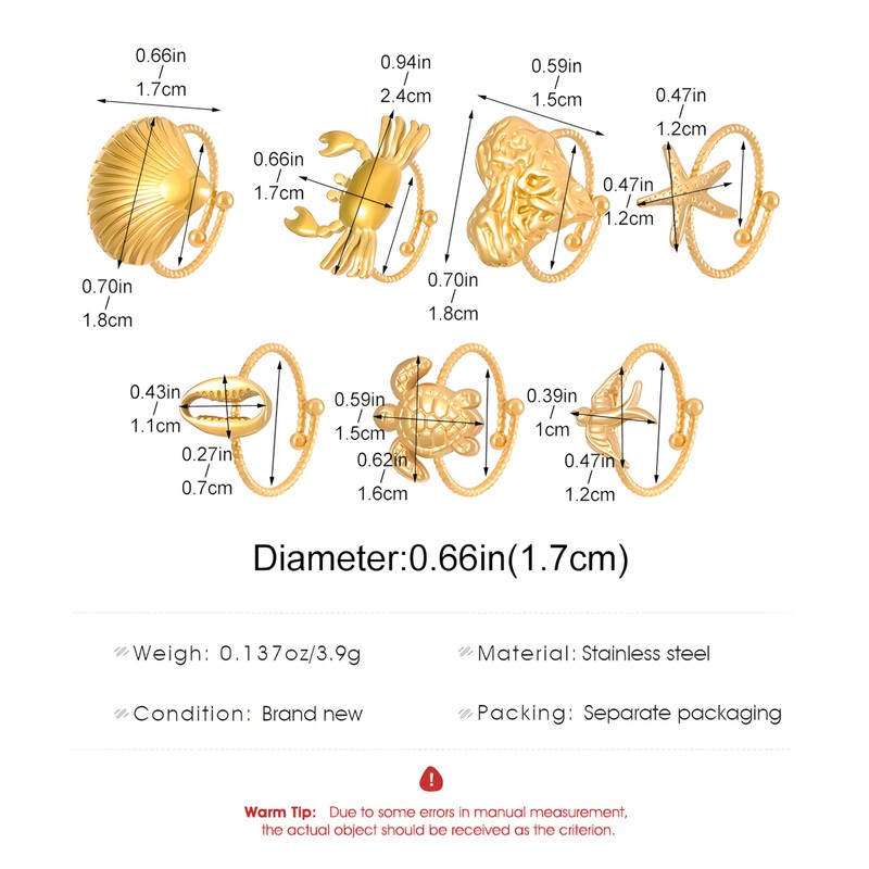 - 【7-Piece Gold Shell & Starfish Beachy Ring Set】:This set includes seven rings featuring a mix of delicate shells and charming starfish designs. Wear them together or separately for versatile styling that enhances any look