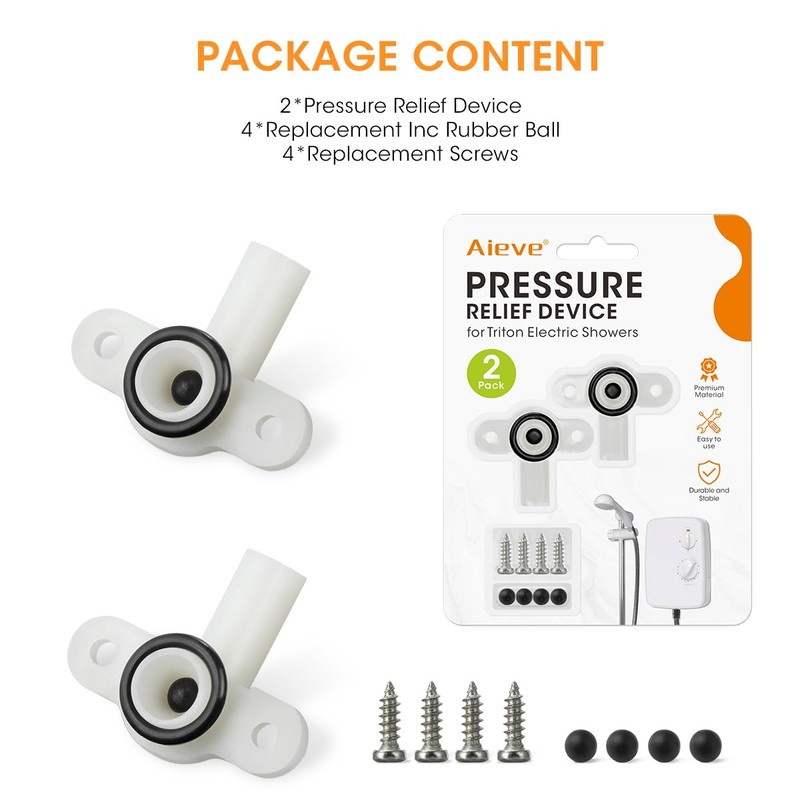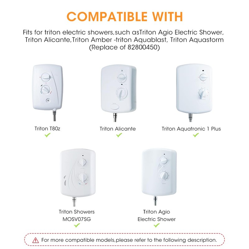 - Widely Compatible with: Our pressure relief device is compatible with triton electric showers, for Triton Agio Electric Shower, Triton Alicante, Triton Amber -triton Aquablast, Triton Aquastorm, Triton Aquasurge, Triton Aquatronic 1 Plus,Triton Aspirante, Triton Aspirante Electric, Triton Aspirante Millenium, Triton Aspirante Topaz, Triton Aspirante Xr, Triton Belize, Triton Bezique 2, Triton Biarritz 2, Triton Biscay 2 (For more models, please refer to our description below).