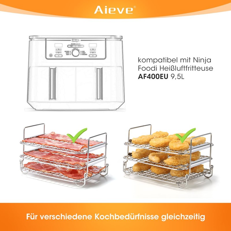 Aieve Hot Air Fryer Grill Grate Dehydrate Multi-Purpose Double Layer Rack Compatible with Ninja Foodi Hot Air Fryer AF400EU 9.5L Accessories for Air Fryer (Upgrade Version)
