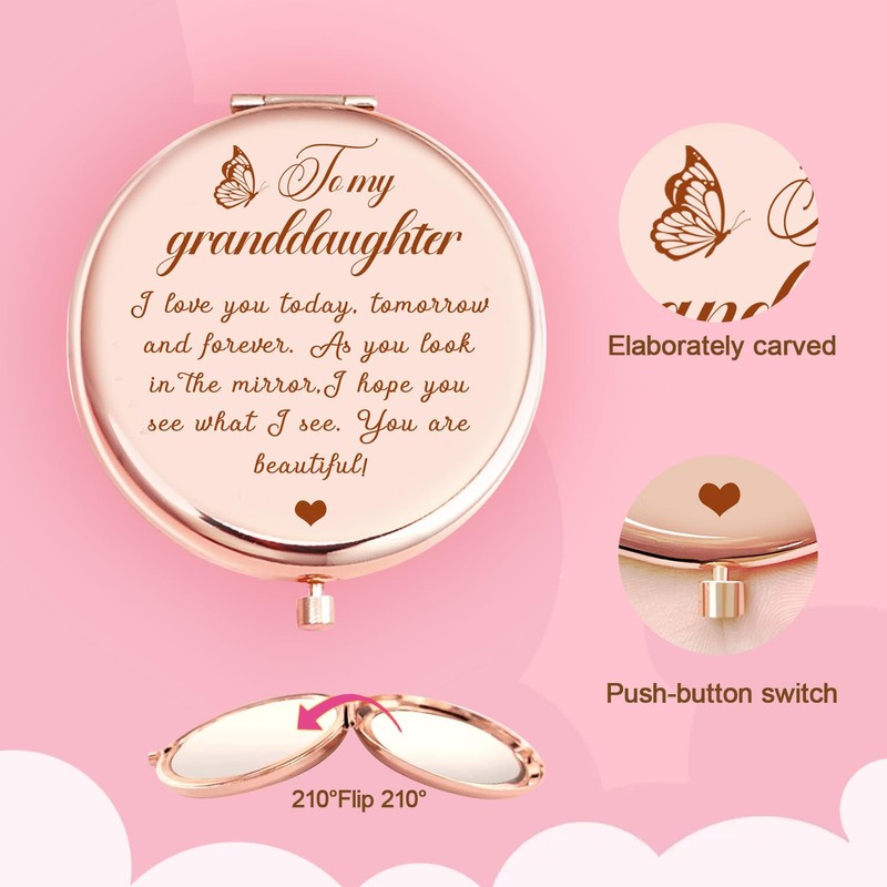 Aievlinkr - Regalos para nieta de la abuela y el abuelo, regalos para nieta, espejo compacto grabado personalizado, para mi nieta, espejo de maquillaje para cumpleaños, graduación, Navidad