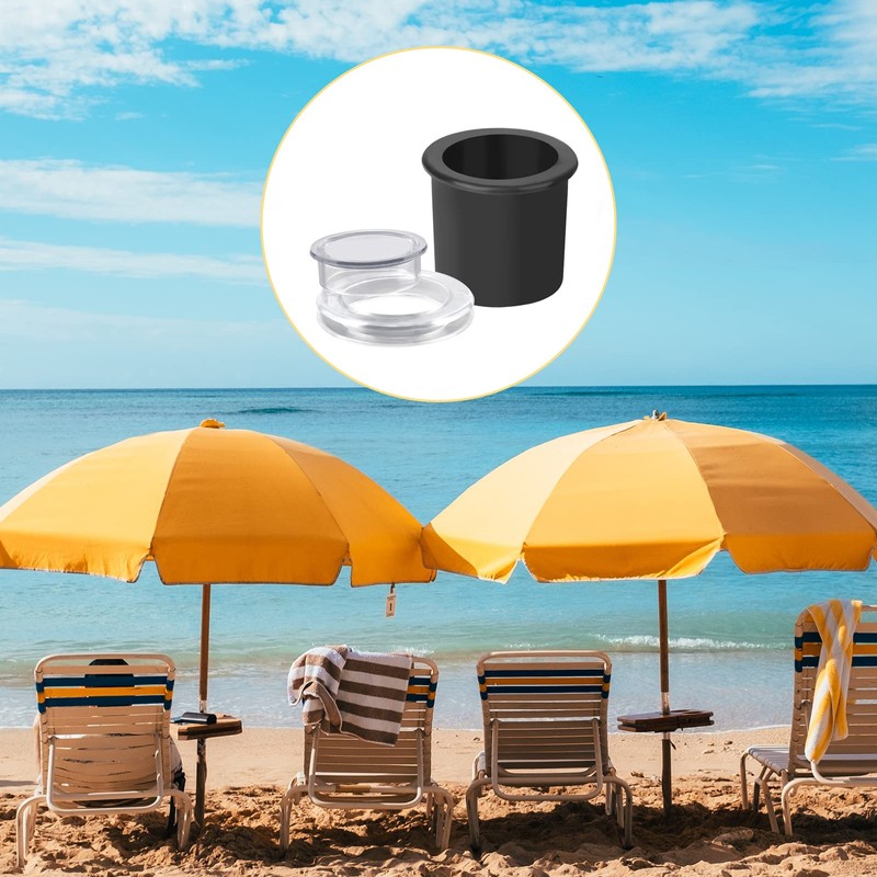 AIEX 2pcs Patio Table Umbrella Hole Ring and Cap Set,Black umbrella wedge is suitable for 2.2" to 2.5" patio table holes, the umbrella hole ring and cap set is suitable for 1.65" smaller umbrella pole