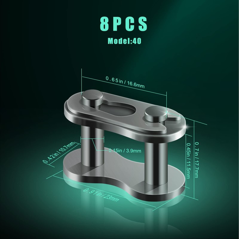 - Product Size: Each #40 chain master link measures about 16x23x10mm / 0.63x0.9x0.4inch. Please check the size of our product carefully before purchasing!