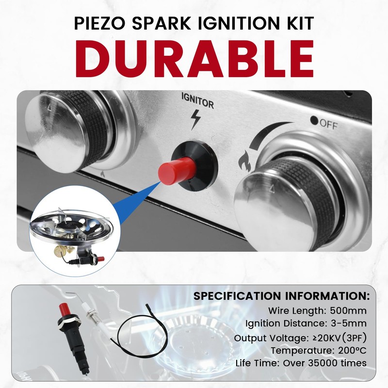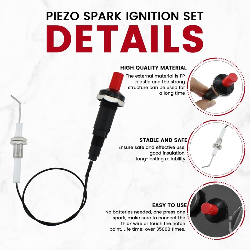 - 【Package Included】Igniter kit includes 1 x push-button piezo igniter, 1 x 30cm threaded ignition needle (curved needle);Note: Keep the ceramic needle about 5mm from the burner hole, otherwise it may not ignite the gas