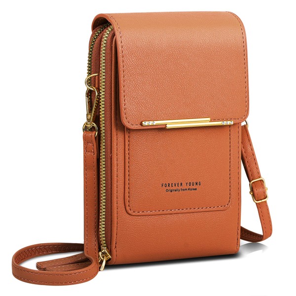 AIFILLE Cross Body Bag Women with Adjustable Long Strap, Phone Bags for Women Crossbody with Touchable Phone Window - Stylish, Functional, and Durable Handbag for Everyday Use, Brown