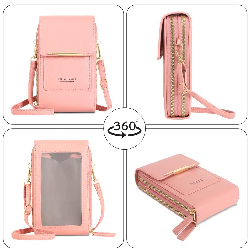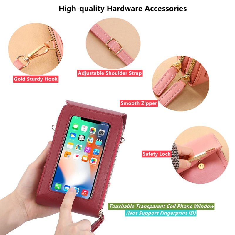 - Womens Cross Body Bags Structure: This cross body bag for women contains 1 outer card slot and 2 main compartments with zip: one compartment contains 1 photo compartment, 4 card slots, 2 larger pockets; another compartment contains 1 main pocket and 1 transparent touchscreen mobile phone pocket. The small PU leather phone bag keep your essentials organized with multiple compartments and pockets, perfect for your phone, cards, keys, and more.