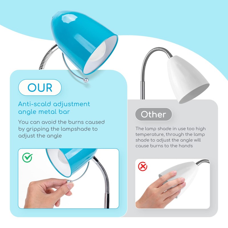 - Adjustable lamp neck: the lamp neck of the metal clamp lamp is humanised and can be adjusted to any angle as needed. Under the lampshade there is a metal rod to adjust the lighting angle and avoid burns caused by the heat of the bulb.