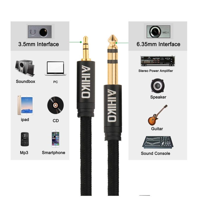 AIHIKO 1/4 to 1/8 TRS Cable with Zinc Alloy Housing and Gold Plugs Nylon Brai...
