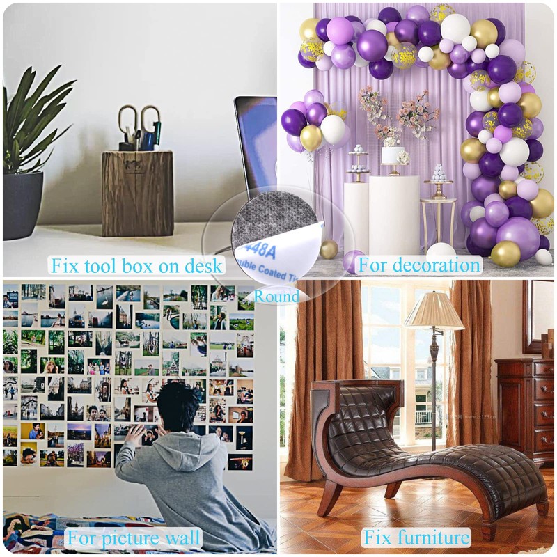 - MULTIFUNCTIONAL--Ideal double sided tape for smooth & minor rough surfaces, such as glass, metal, plastic, wood, marble, brick, concrete wall, Also work on some minor rough surface like mosaic. You can hang picture,mixtles,ballon, fix carpet & more