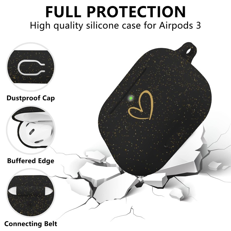 - 【Comprehensive protection】Made of high-quality and durable soft silicone material, it provides full protection for your Airpods 3 from drops, scratches and bumps.There is also an additional dust-proof design at the bottom.