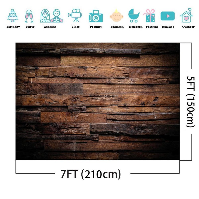 AIIKES 7x5FT Brown Wood Backdrop for Photography Retro Wood Wall Background Baby Shower Birthday Party Photo Backdrops Photo Studio Prop 11-794