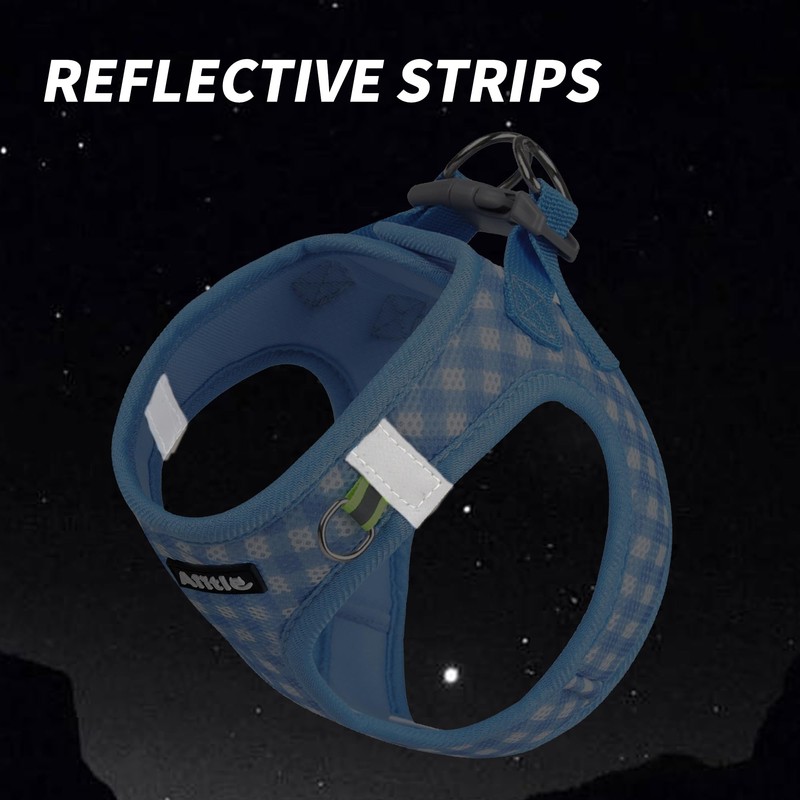 AIITLE Adjustable Dog Harness and Leash Set, Step in No Pull Pet Harness, Soft Mesh Reflective Plaid Vest Harnesses for Small Dogs Puppy and House Cats Outdoor Walking Running Blue XS
