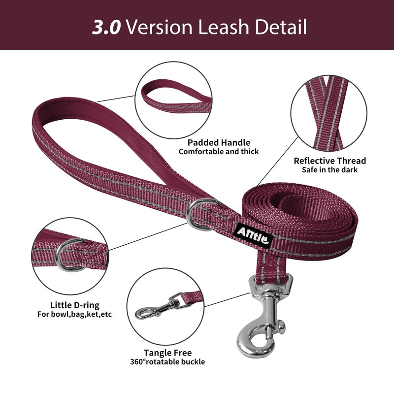• MATCHING HIGH QUALITY DOG LEASH Different from others, Aiitle matching dog leash is made of strong high density nylon rope, which has extremely high durability. The padded handle makes it much softer and more comfortable to hold and wrap around your hand. The luminous reflective threads ensure safety and visibility on your evening walks. It can be used individually as a basic dog leash with other harnesses or collars.