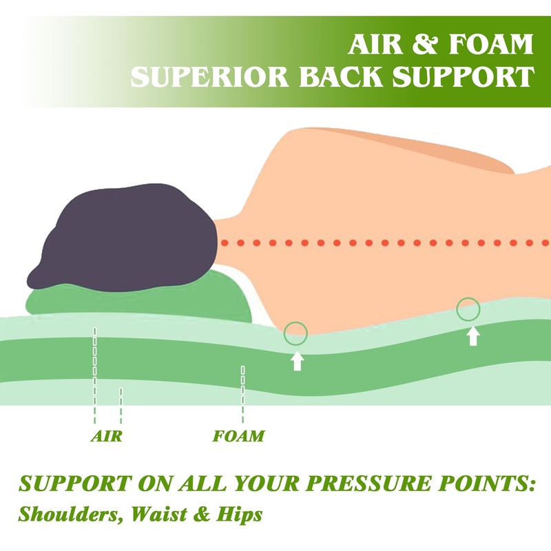 • 【Cloud-like Support, Zero Pressure Points】: Aiivow 4-inch thick self-inflating sleeping pad, generously filled with pressure-relieving memory foam. Internal adopts unique structure to ensures that air and foam are evenly distributed throughout the self inflating air mattress. It helpful that eliminating pressure points on hips and shoulders. Bring you experience cloud-like comfort.