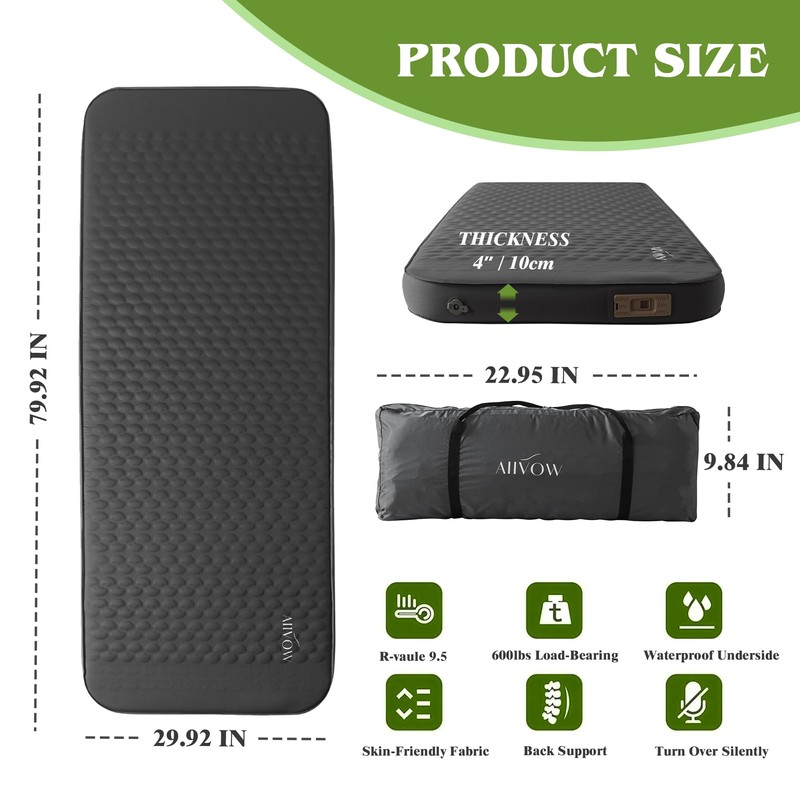 Aiivow 4" Extra-Thick Self Inflating Sleeping Pad for Camping with Electric Pump, Ultralight Memory Foam Camping Mattress,Portable 9.5 R-Value Camping Pad Sleeping Mat for Tent, Car, Cot, Grey