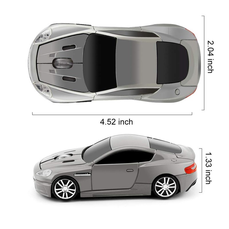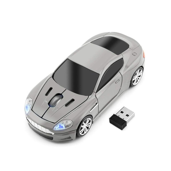 Aikchi Wireless Sports Car Mouse, 3D Optical Mouse for Desktop Laptop PC Computer Mouse, LED Light 2.4GHz 1000DPI Mice for MD (Gray)