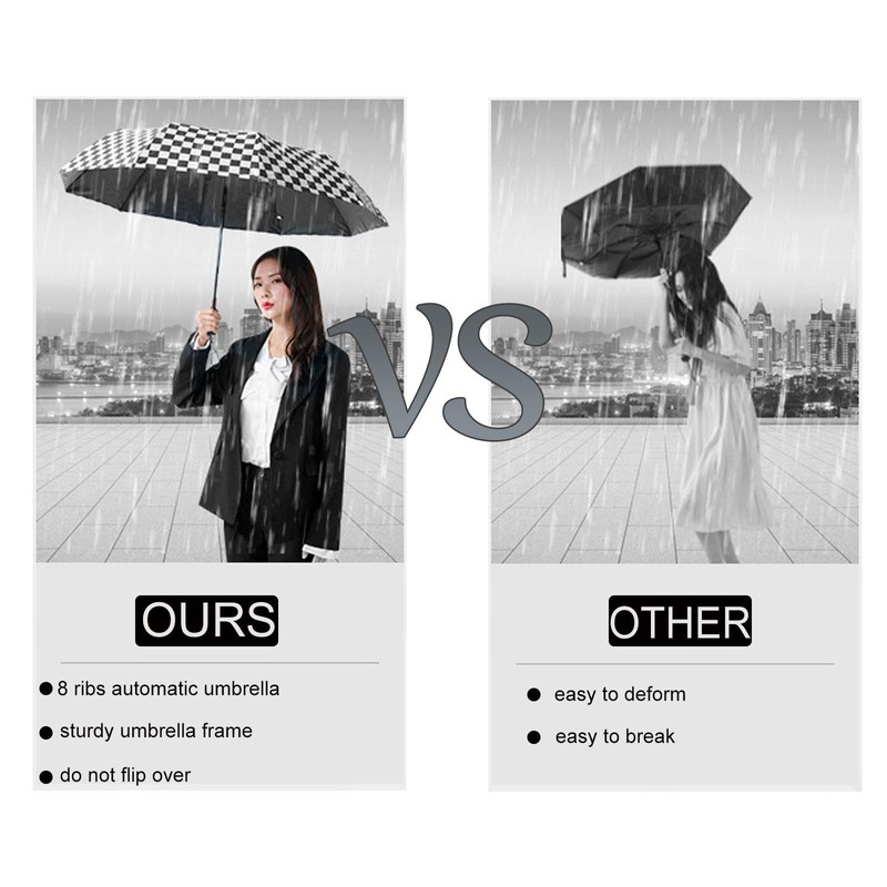 Aikelai Checkered Automatic Compact Umbrella Windproof Waterproof Umbrellas for Rain and Sun, UV Protection Folding Travel Umbrella (black)