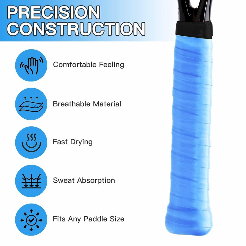 - Pro-Grade High-Tack PU Grip Tape : Our's precut tennis overgrip features tournament-ready adhesion with premium PU material. Its high-tack surface locks your racket handle securely, delivering pro-level control through intense serves and volleys.