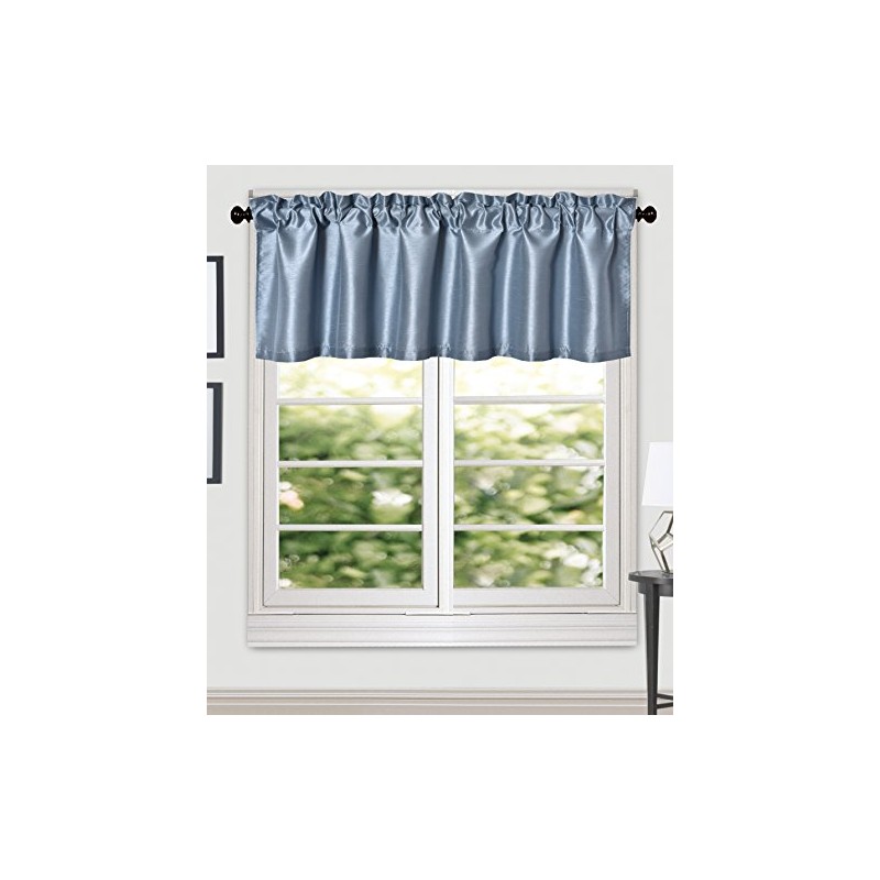 Aiking Home (Pack of 2) Solid Faux Silk Window Valance, 56 by 16 Inches, Slate