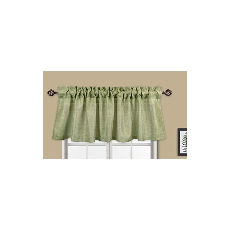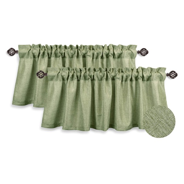 Aiking Home Window Curtain Valances, Faux Linen Textured Semi-Sheer Polyester Window Valances with Rod Pocket (Set of 2, 56"x16" Each Panel, Moss)
