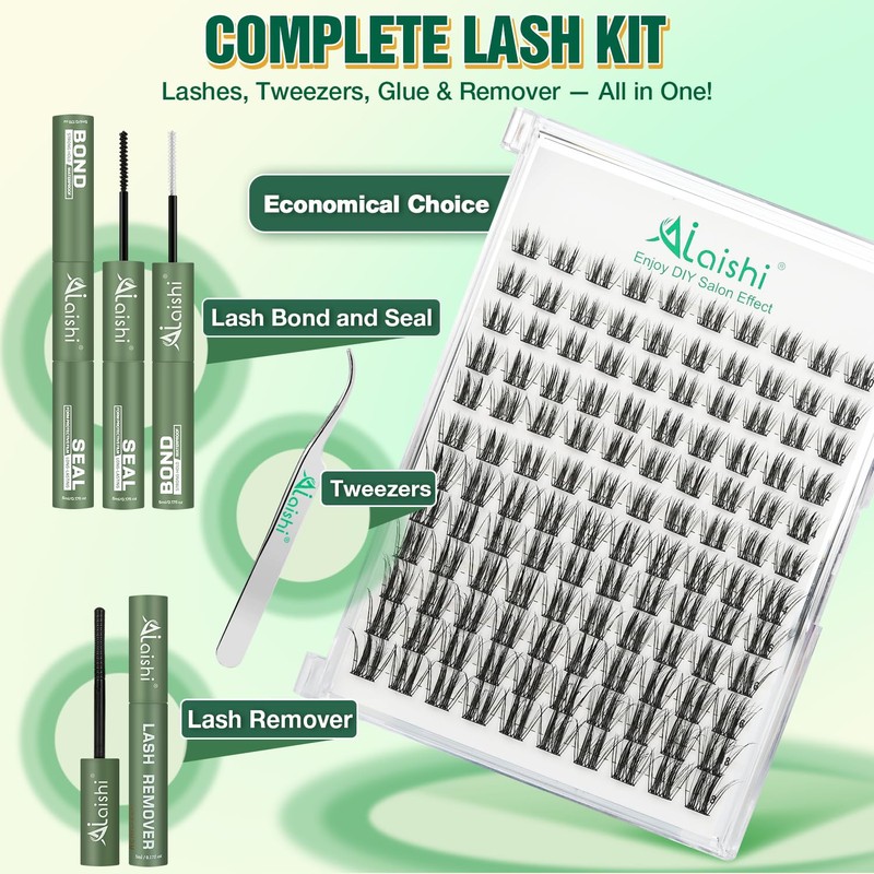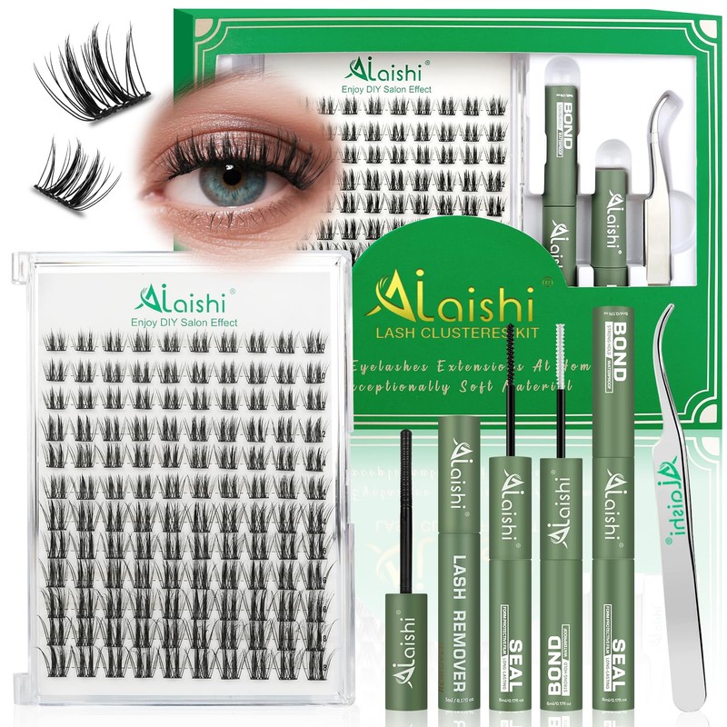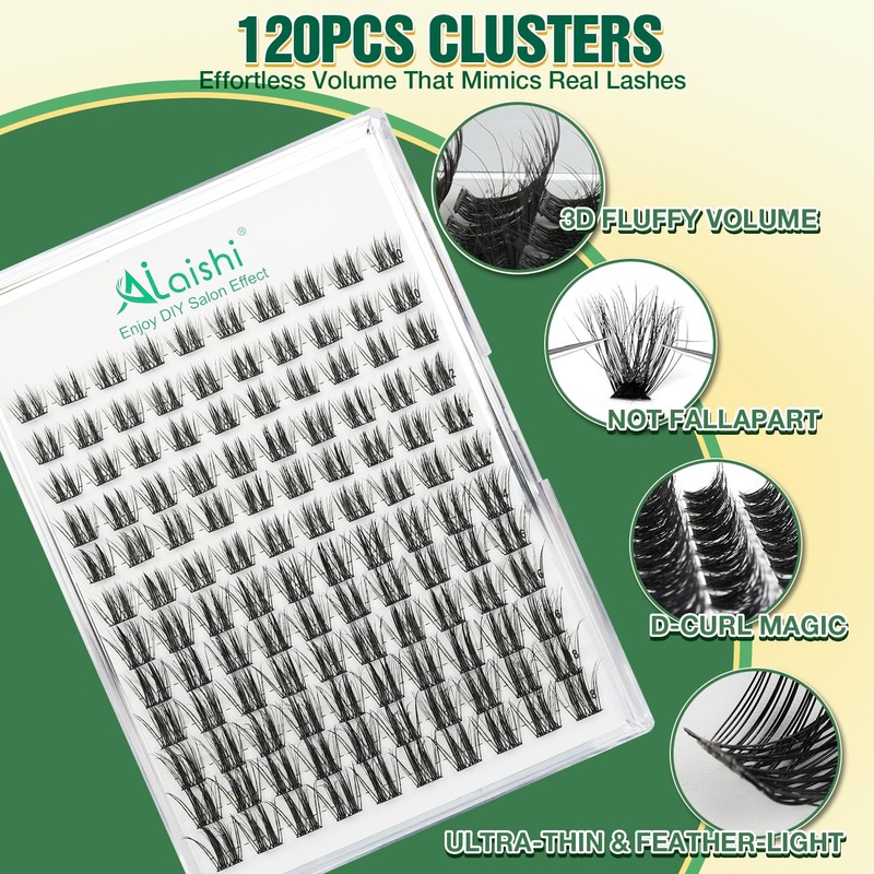 AILAISHI Lash Clusters Kit, DIY 3D Cluster Eyelash Extensions 10‑18mm,120pcs Fluffy D Curl Soft Natural Lashes with Bond and Seal,Remover,Tweezers,–Fake Cat Eye Wispy Individual Clusters MIX1-2-L