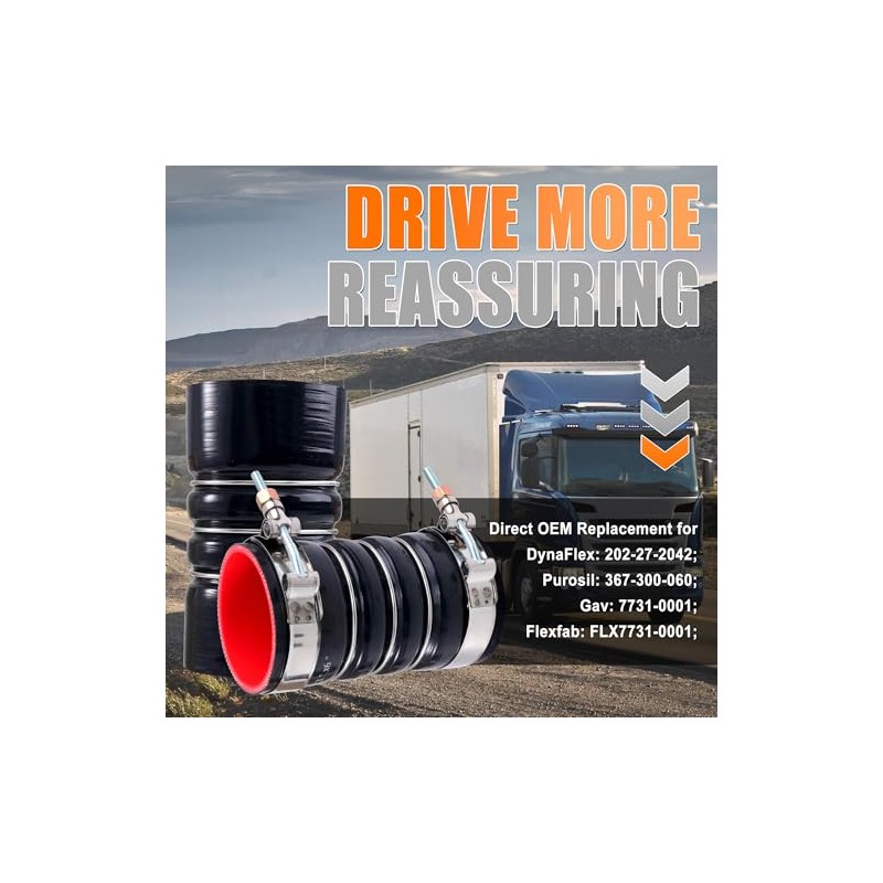 - REPLACE FOR: Direct OEM Replacement for DynaFlex: 202-27-2042; Purosil: 367-300-060; Gav: 7731-0001; Flexfab: FLX7731-0001. If an OEM part number is unavailable, we kindly request that you verify the hose dimensions to assess compatibility. Fits most common Peterbilt, Freightliner, and Kenworth models. Silicone hose is NOT compatible with fuel or oil