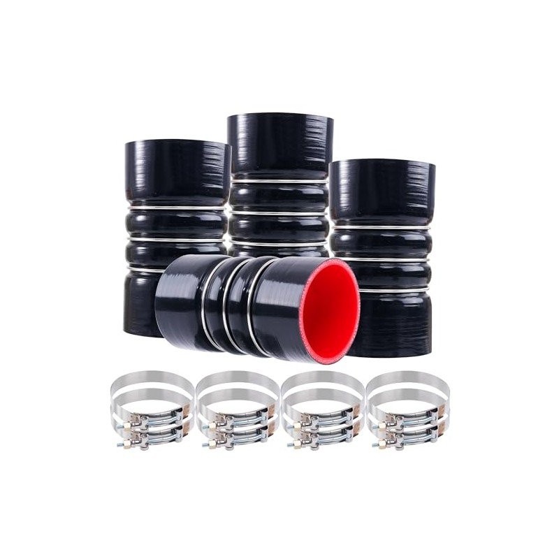 - HIGH-QUALITY MATERIAL: These hoses, made from high-quality silicone, provide exceptional durability, wear, and temperature resistance, ensuring a stable, long-lasting structure. Paired with 304-stainless Steel T-Bolt Tension Clamps, they guarantee a secure, leak-free seal with a self-locking nut to prevent loosening